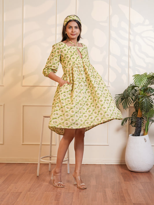 Natalie Handblock Printed Garden Waltz Midi Dress