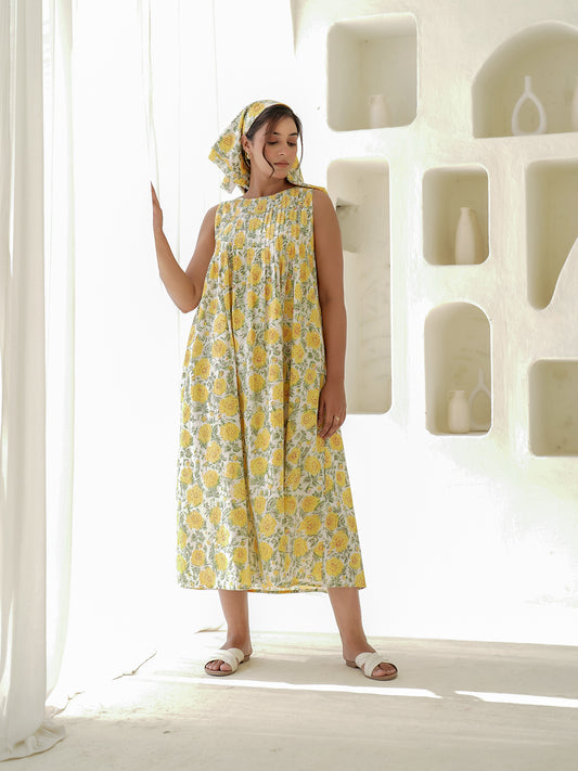 Rebecca Hand Block Printed Sunshine Maxi Dress
