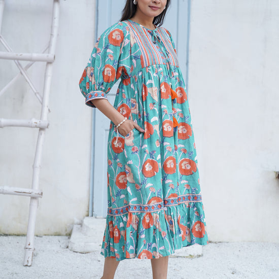 Miraya Handblock Printed Garden Stroll Dress